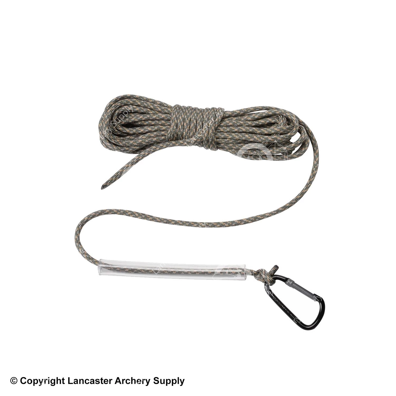 - The 22′ no-burn rope is perfect for tree stands up to 25′ and includes great extras like a large carabiner clip and 4″ tubing to keep fingers safe on let-down