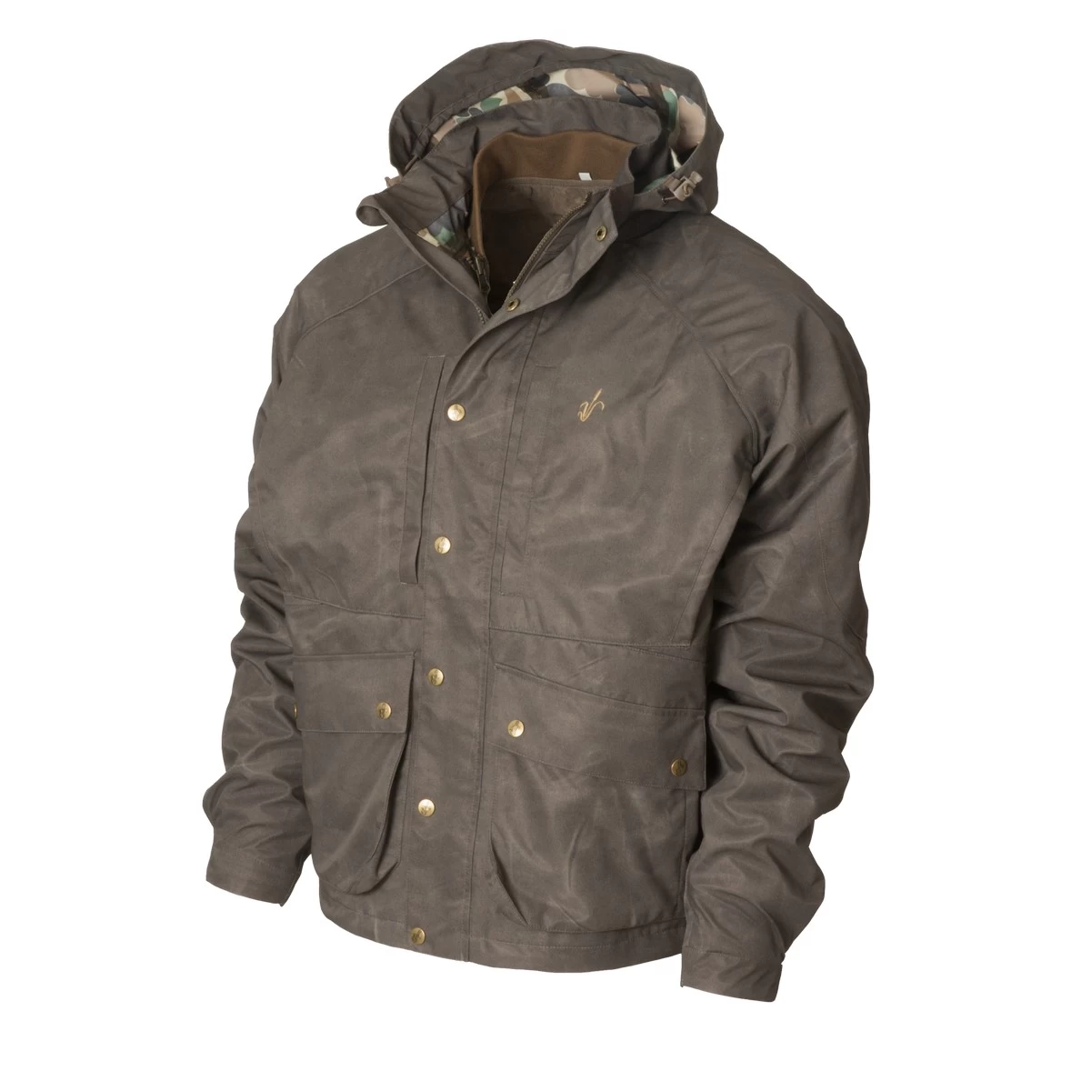 Avery Heritage Hybrid Wader Jacket Heritage Collection Hybrid Wader Jacket●SHEDS™ waterproof / breathable technology●100% waterproof seams●Anatomical tri-adjust hood●Weather-resistant YKK zippers●100-g PrimaLoft® silver insulation●Zip-out liner with stylish old-school camo print can be worn as a standalone garment●Fleece-lined upper hand warmer pockets●Bilateral magnetic chest pockets●Bellowed shell pockets with stylish snap button flaps