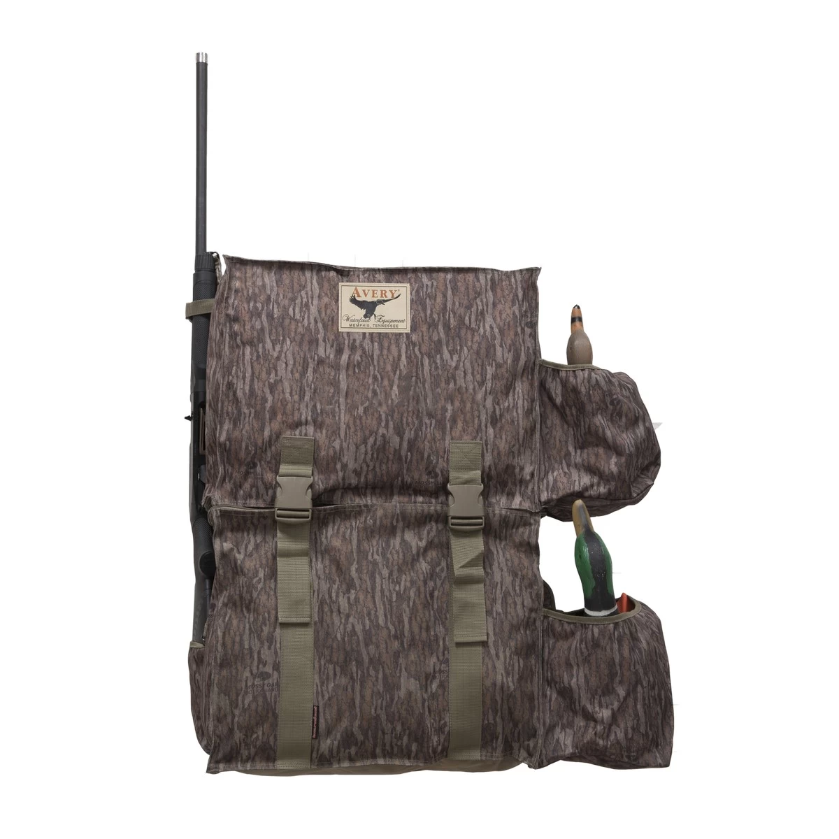Avery Decoy Backpack. This great Avery Decoy Backpack makes it easy to haul a dozen floating decoys two spinning wing decoys and your gun all in one bag! Made with rugged 600D heavy-duty polyester construction this handy backpack features two stacked six-slot bags two side pockets for spinning-wing decoys a gun stock pocket and a vertical barrel strap to keep your waterfowl-hunting essentials organized. Other great features include EVA padded back support and padded shoulder straps and waist belt for added comfort. It includes a full top cover with heavy-duty 2 buckles and 4mm quick drain mesh bottom. Hands down best decoy bag you’ll ever own. Rugged construction this thing is made for hardcore waterfowlers. There is enough room inside the decoys slots for snacks and drinks or even some ammo.Material: 600 Denier PolyesterSpecies: DuckDecoy Type: FloatingAdjustable Shoulder Straps: YesNumber of Slots: 12