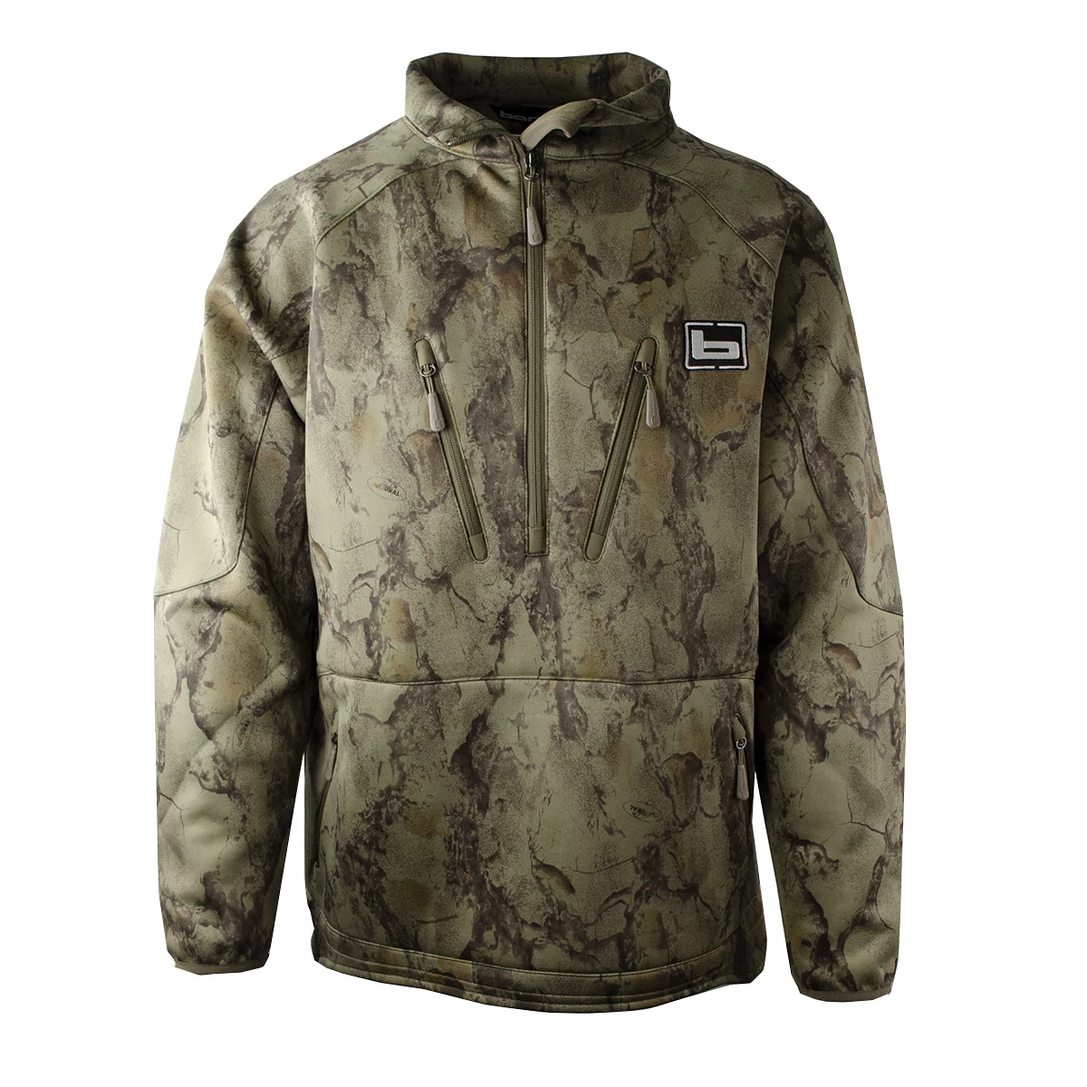 Banded Heavy Tec Fleece Half Zip Pullover. A heavier option in the sensationally comfortable Tec Fleece collection. This heavyweight, technical polyester fleece is durable, and moisture shedding with wind-blocking capabilities. Featuring two zippered chest pockets, a zippered kangaroo style pocket, elastic cuffs to seal in warmth and an extended back for added protection. Polyester fleece construction is durable for many years of use Breathable fabric is comfortable and moisture wicking Elastic cuffs seal out cold air YKK zippered kangaroo and upper chest pockets Pit-zip venting for added breathability Side zip provides easy entry and exit Soft and warm polyester fleece is machine washable and fade resistant