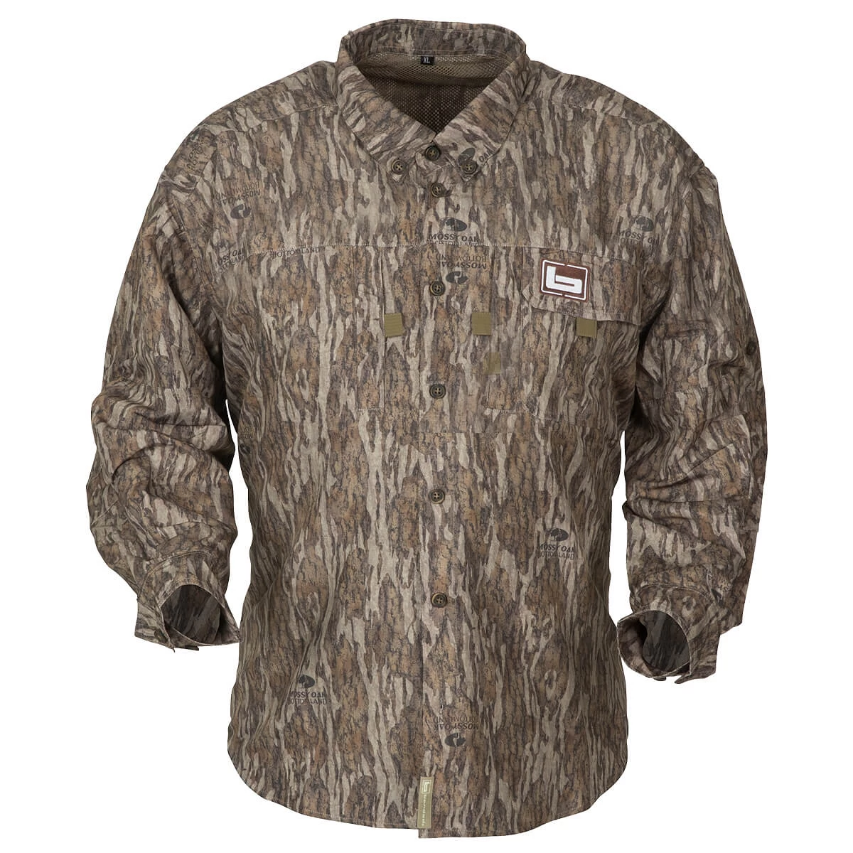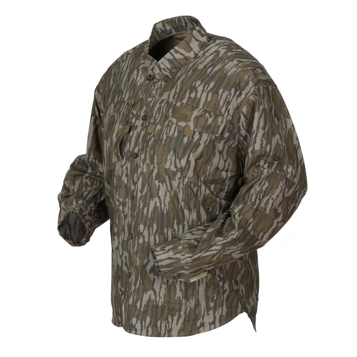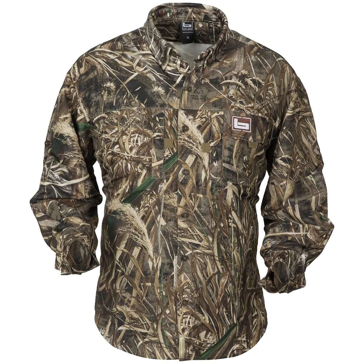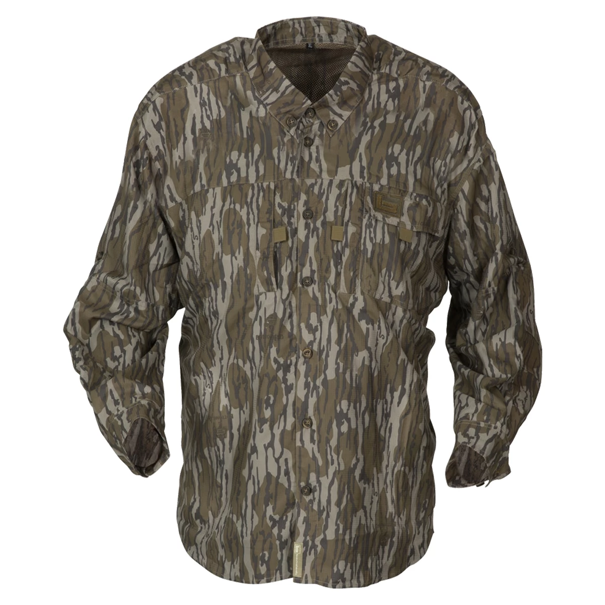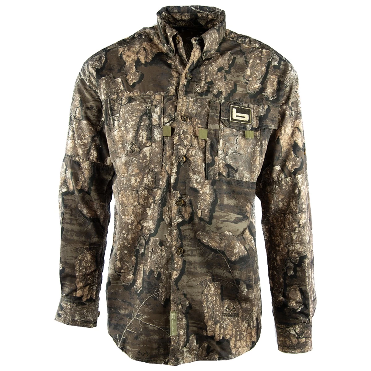 Chasing wild gobblers can take you through swamps heavy cover majestic woods and rocky mountainsides. Turkey hunting requires clothing that is tough and light. Plus temperatures can vary over the course of the spring adding another dimension. The Banded Turkey Series Lightweight shirt is made for the warmer days typically found as the season progresses. A breathable ultralight poly blend fabric body with dual chest pockets in the shirt gives you storage capacity and comfort. Banded Lightweight Shirt Features: Rip-stop ultra-light poly fabric is abrasion resistant and cool on warm days Vented back allows heat to escape and lets the breeze in Articulated shoulders allow for free range of arm motion Magnetic closure chest pocket on left for easy access to gear Roll up shirt sleeve button for the hottest weather