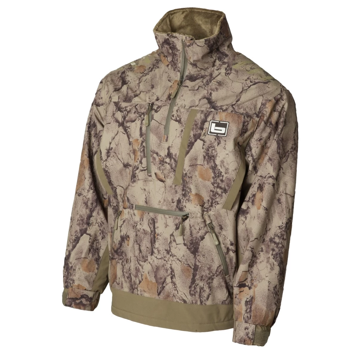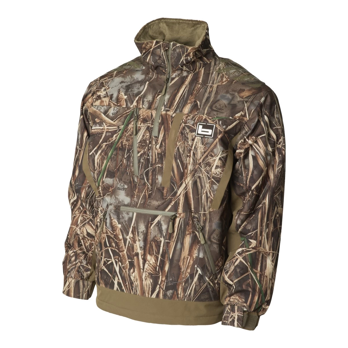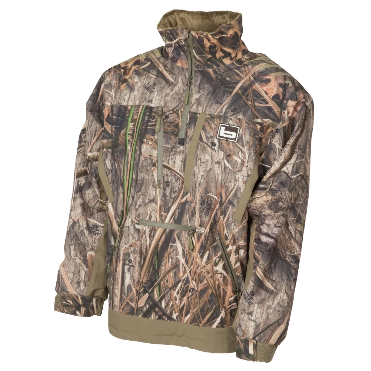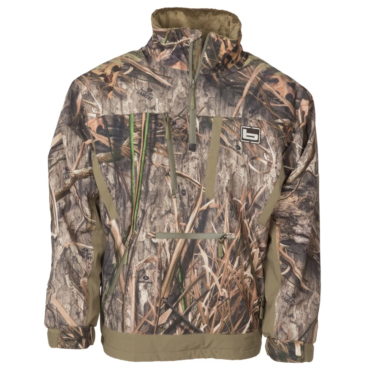 Banded Stretchapeake PulloverThe popular, best-selling Chesapeake Jacket injected with STRETCH. The GO3-LAYER™ fabric construction provides lightweight performance with superior durability. Injected with 4-way stretch for extreme maneuverability and comfort. A sensationally comfortable coral-fleece lining is wrapped in a SHEDS™ waterproof/breathable shell. Coral-fleece lined upper hand-warmer pockets. Convenient magnetic and zippered chest pockets, adjustable stretch cuffs, and an elastic draw cord hem. The Pullover option is equipped with a zippered drop-in torso pocket. The Pullover design features a mock that provides additional coverage and neck protection. The Jacket design is equipped with an anatomical tri-adjust hood for total neck and head protection. Two YKK zippered hand pockets.Stretchapeake Insulated Jacket/Quarter Zip Pullover4-way stretch for extreme maneuverability and comfortGO3-LAYER fabric construction is lightweight and provides superior durability and performanceSHEDS™ waterproof / breathable technologySensationally comfortable coral-fleece liningVariably conditions adjustable cuffsDurable YKK zippersZippered drop-in torso pocket (1/4 Zip Design)1/4 Zip design features a mock collar that provides additional coverage and protectionFull-Zip design features anatomical tri-adjust hood for full head protectionTwo zippered hand pockets
