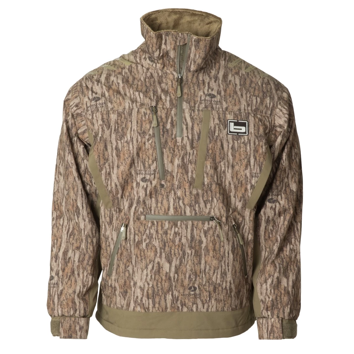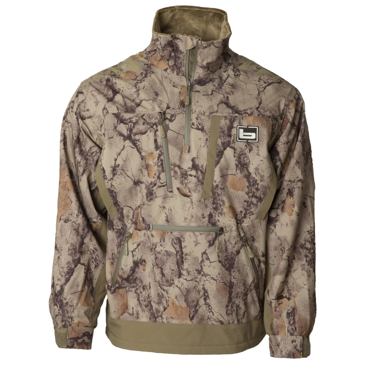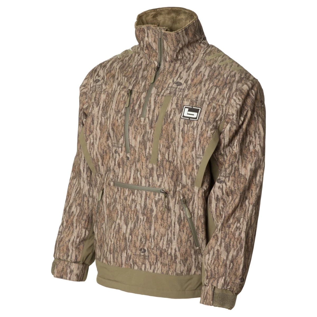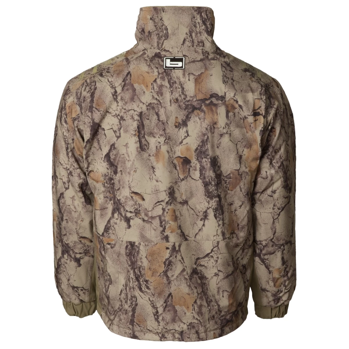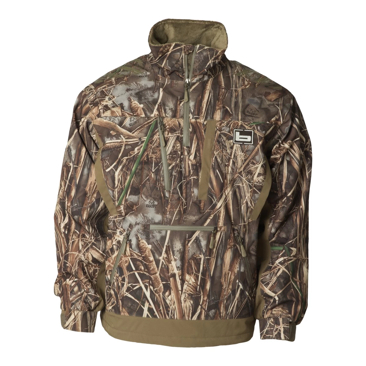 Banded Stretchapeake PulloverThe popular, best-selling Chesapeake Jacket injected with STRETCH. The GO3-LAYER™ fabric construction provides lightweight performance with superior durability. Injected with 4-way stretch for extreme maneuverability and comfort. A sensationally comfortable coral-fleece lining is wrapped in a SHEDS™ waterproof/breathable shell. Coral-fleece lined upper hand-warmer pockets. Convenient magnetic and zippered chest pockets, adjustable stretch cuffs, and an elastic draw cord hem. The Pullover option is equipped with a zippered drop-in torso pocket. The Pullover design features a mock that provides additional coverage and neck protection. The Jacket design is equipped with an anatomical tri-adjust hood for total neck and head protection. Two YKK zippered hand pockets.Stretchapeake Insulated Jacket/Quarter Zip Pullover4-way stretch for extreme maneuverability and comfortGO3-LAYER fabric construction is lightweight and provides superior durability and performanceSHEDS™ waterproof / breathable technologySensationally comfortable coral-fleece liningVariably conditions adjustable cuffsDurable YKK zippersZippered drop-in torso pocket (1/4 Zip Design)1/4 Zip design features a mock collar that provides additional coverage and protectionFull-Zip design features anatomical tri-adjust hood for full head protectionTwo zippered hand pockets