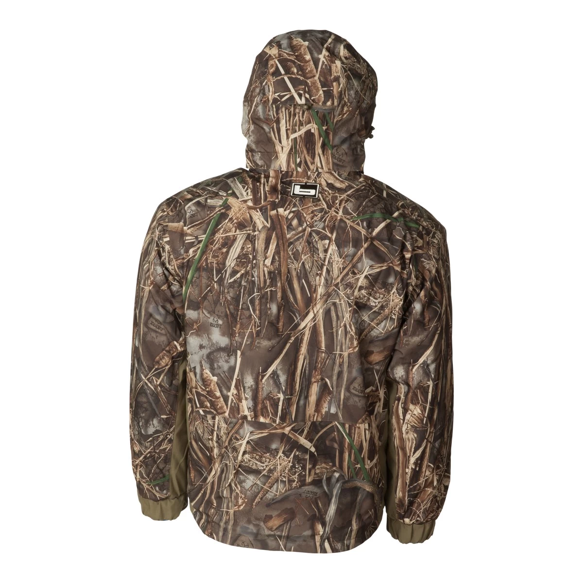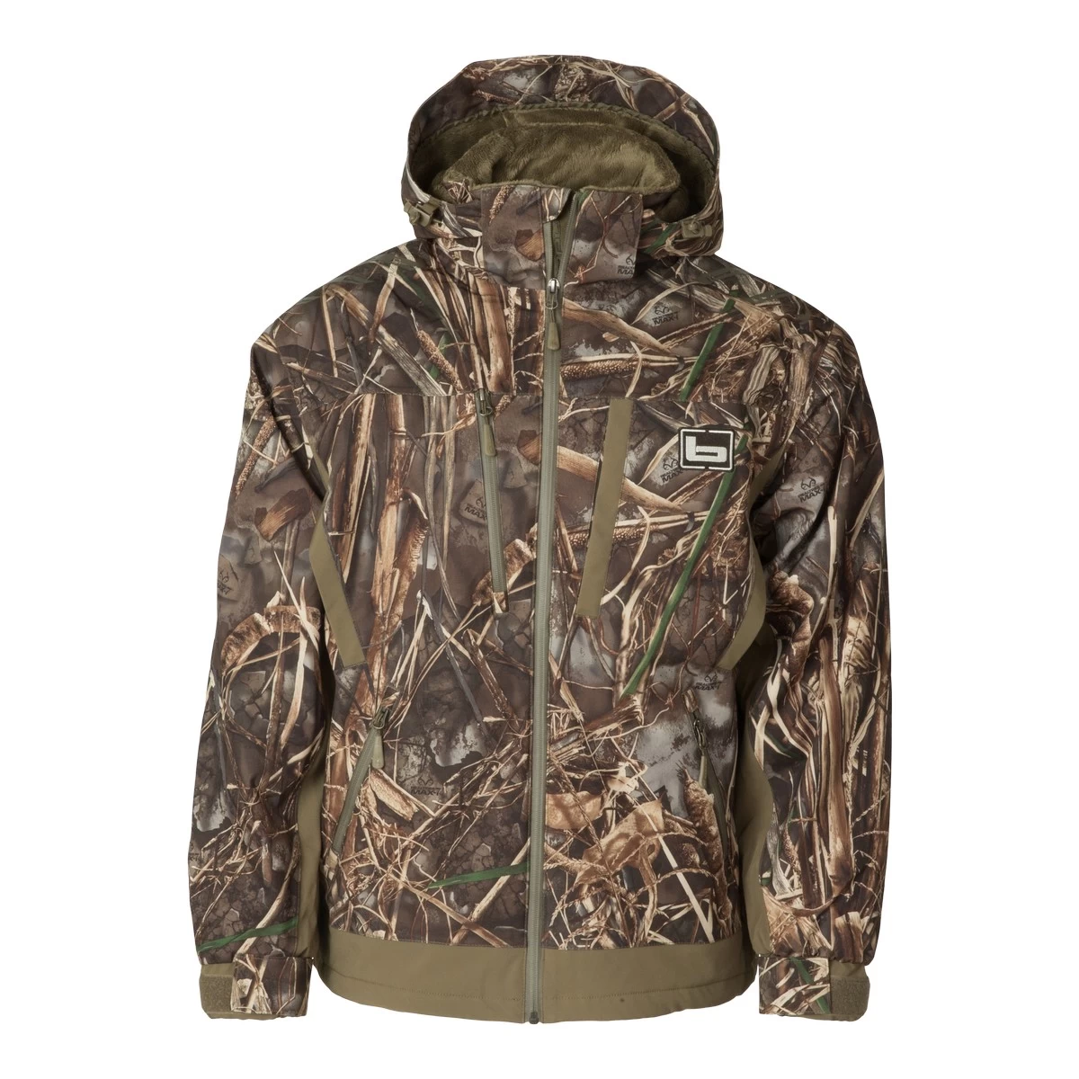 Banded Stretchapeake Wader Jacket ●4-way stretch for extreme maneuverability and comfort●GO3-LAYER fabric construction is lightweight and provides superior durability and performance●SHEDS™ waterproof / breathable technology●Sensationally comfortable coral-fleece lining●Variably conditions adjustable cuffs●Durable YKK zippers●Full-Zip design features anatomical tri-adjust hood for full head protection●Two zippered hand pockets