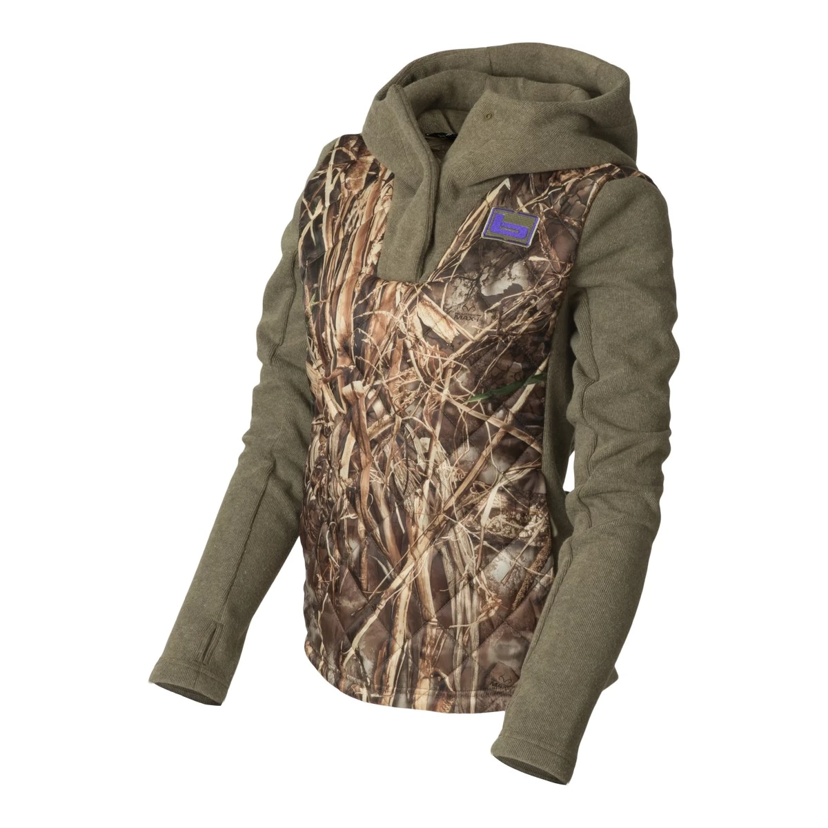 Banded Women’s Kinetic Hybrid Hoodie ●100-g PrimaLoft® insulated body●Stylish sweater-knit fleece arms and hood●DWR (durable water repellent) core fabric●Pullover design●Perfect for the active hunter