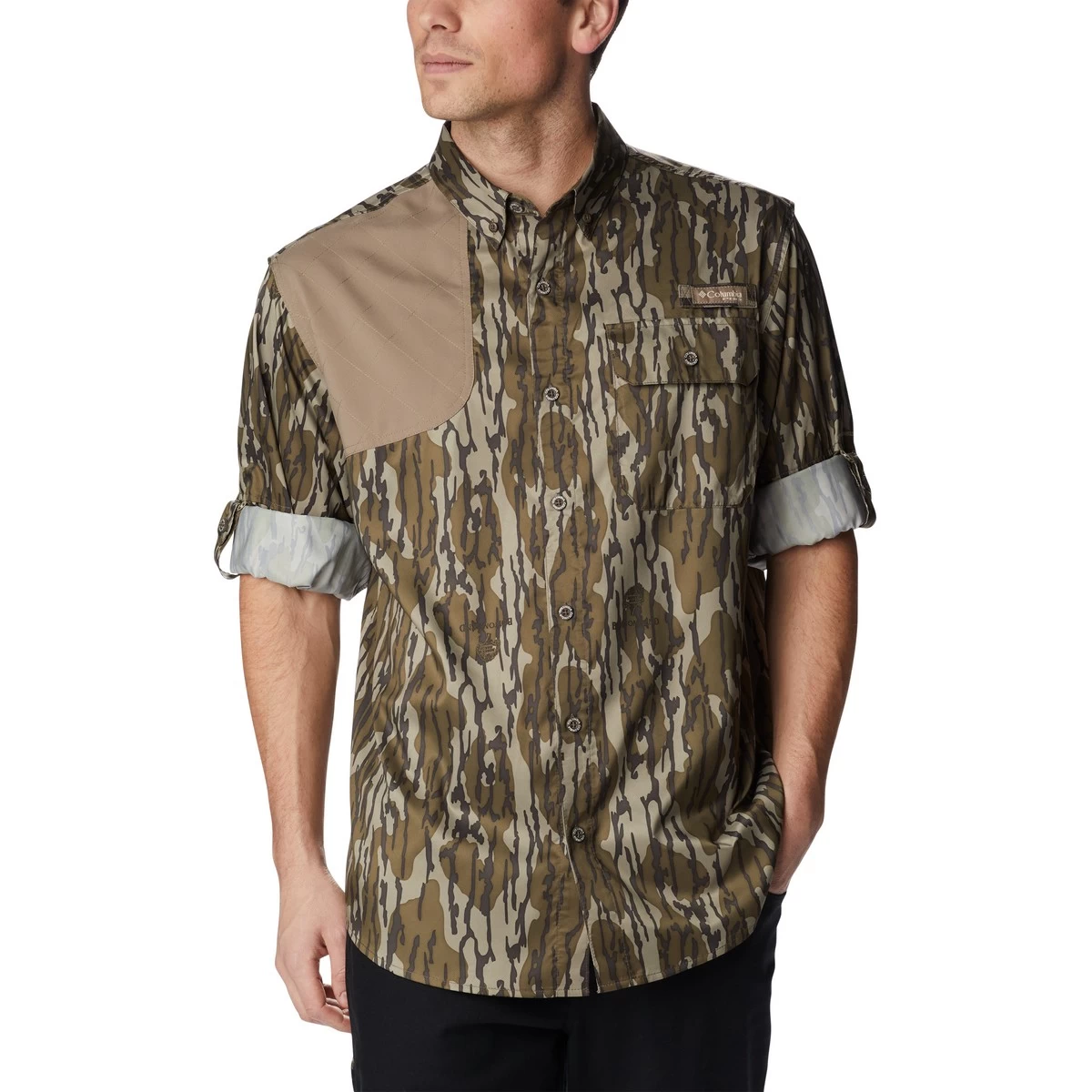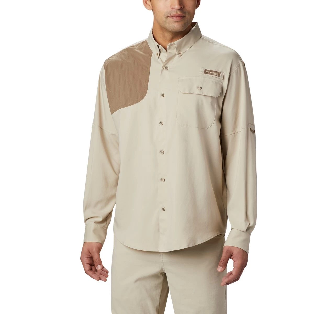 Columbia Men’s Blood and Guts Shooter ShirtFabric Shell: 100% PolyesterFeaturesOmni-Shade™ UPF 50 sun protection.Omni-Shield™ Blood ‘n Guts advanced repellency.Roll-up sleeve.Button closure chest pocket.Measurements Center Back : 30 in / 76 cmTechnologies Omni-Shade UPF 50 Omni-Shield Blood ‘N Guts