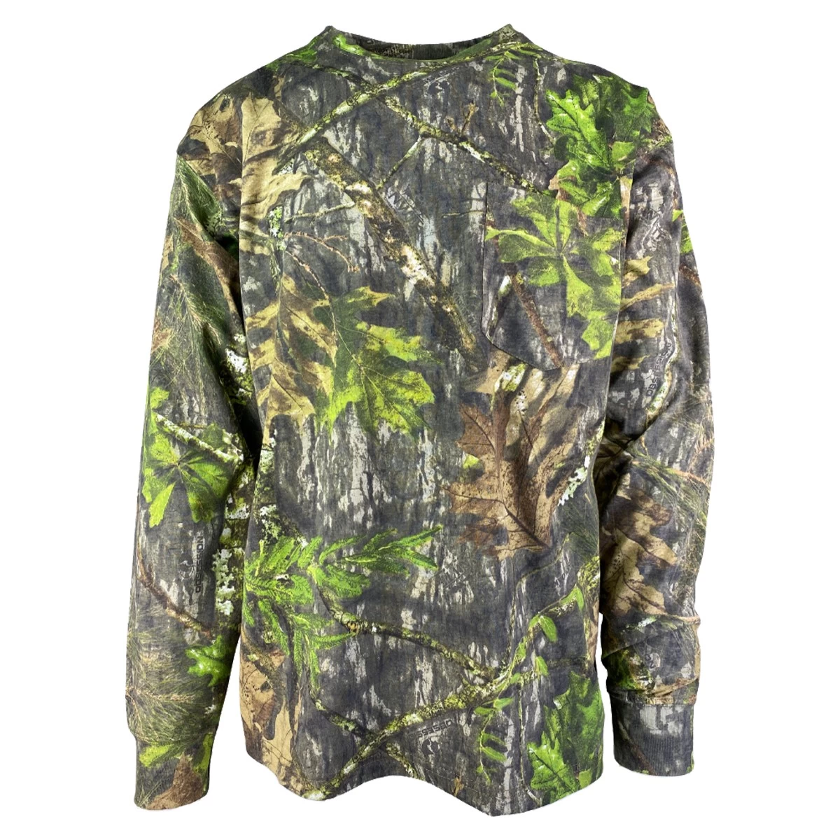 Deluxe Explorer Long Sleeve T-Shirt. Perfect for layering under your other hunting clothes or wearing as a lightweight t-shirt on warmer days. You’re sure to find one – or two – that you really like!Features:Rib knit collar and cuffsFull bodied cut with extra long tailsAvailable in a variety of camo patternsPerfect for layering60% cotton 40% polySome styles have pocket and some do not