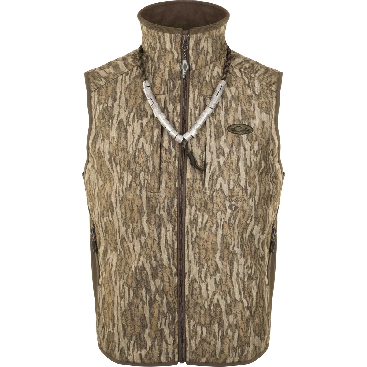 The Camo Windproof Tech Vest vest is an excellent core layering piece during the hunt, as well as an outerwear option when temperatures are mild. This vest stops biting winds to keep you comfortable. The windproof barrier doesn’t add bulk, and the vest has a high warmth-to-weight ratio. • 100% polyester tech shell • 100% polyester bonded fleece lining with windproof membrane • Magnattach™ chest pocket • Zippered chest pocket • Small internal zippered chest pocket • Zippered lower pockets • Drawstring waist • Four-way stretch side panels