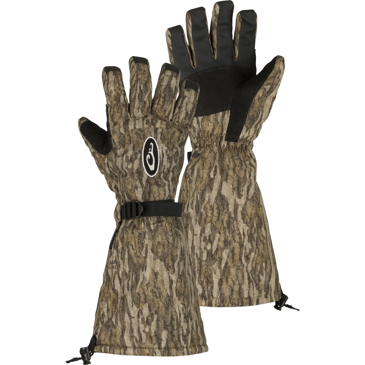 Drake MST Refuge HS Gore-Tex Gloves Double-DutyMATERIALS:• Refuge HS™ outer fabric treated with DWR (Durable Water Repellent) • Waterproof, breathable GORE-TEX® membrane• Digitized goat skin leather palmFEATURES:• Stay-Put™ liner system bonds the liner to the glove so there is no twisting and bunching inside the glove• Adjustable shock cord cuff closure with cord lock, keeps wind out and locks in heat• Full gauntlet length fits over coat