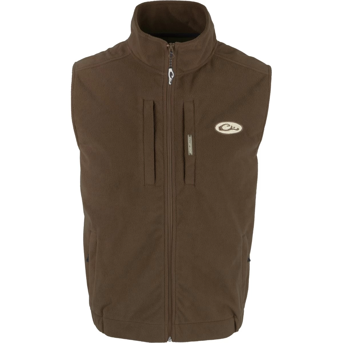 The Drake MST Windproof Fleece Layering Waterfowl Vest is a great layer for those of you that like to keep warm but also like having full range of motion. This water resistant fleece vest with Instinctive Features will keep your core warm and ready to keep hunting. It can be worn under any of the Drake Waterfowl jackets or by itself for a warm non-binding alternative. Includes two zippered slash pockets magnet pocket on chest along with zip security pocket. It’s not too hard to decide what to wear on hot and cold days but what about those in-between days when the temps fluctuate dramatically? The MST series is made of windproof waterproof breathable gear designed to be worn without layering when temperatures range from 20 to 45 degrees. Features:Windproof water-resistant fleece vest with Instinctive FeaturesWear under any Drake jacket or by itselfTwo zippered slash pocketsMagnattach pocket on chestZip security pocket100 percent polyesterCalls and accessories NOT included.We’re sorry but personalized items cannot be returned unless the item is defective. Once placed your order cannot be cancelled. Please enter your info carefully and double check it in your shopping cart. Thank you!
