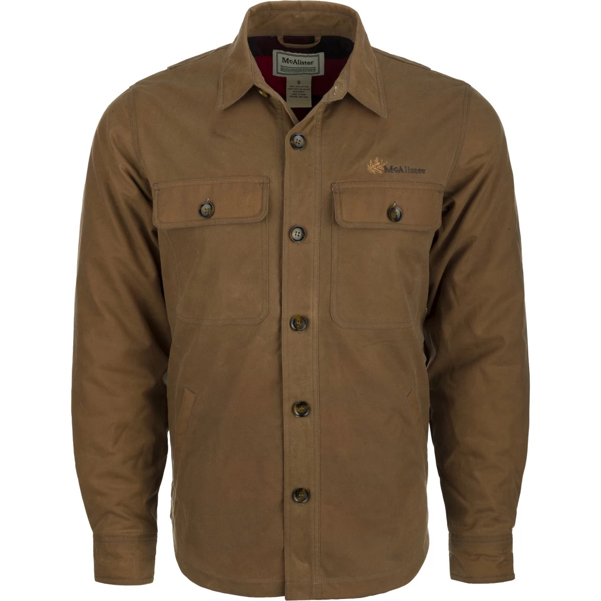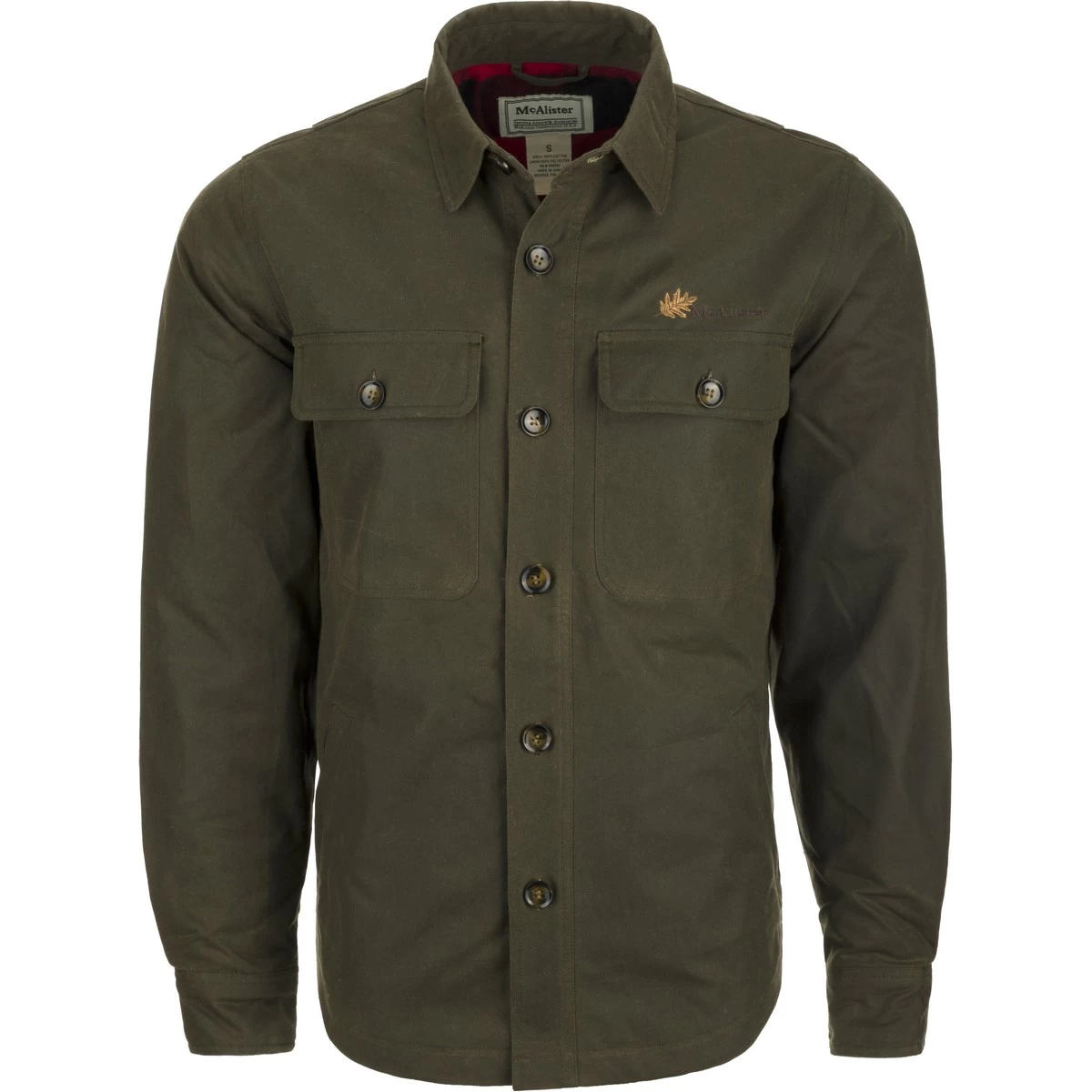 McAlister Waxed Cotton Jac-ShirtMATERIALS:• 100% cotton 8-oz dry wax shell• 100% cotton flannel liningFEATURES:• Water and wind resistant• Bi-swing back pleat• Heritage look with a functional fit