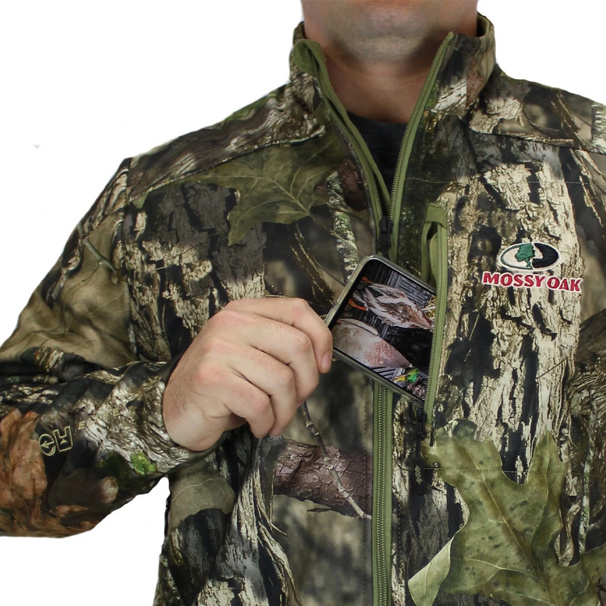 The Piedmont Grid Fleece Mossy Oak hunting Jacket is the perfect combination of stealth, protection, and comfort. Coupled with ultra quiet brushed polyester outer fabric with a highly water resistant and windproof mid-layer. Additionally, this camo hunting jacket features a grid fleece lining with pit zips for ideal ventilation optimized for mid-season temperature swings. Lastly, the Piedmont Camo Jacket features 3 zippered pockets along with a rear safety harness pass through port for a secure, comfortable, and safe fit in you stand or climber. Brushed 100% Polyester extremely quiet outer fabric with Grid Fleece inner fabric Mid-height collar: soft, comfortable fleece for protection and warmth Pit zips: for additional air flow and venting when needed Scent Slayer™ odor protection uses silver ion technology to eliminate odor and scent Zippered storage pocket at chest for easy access device storage Dual-zippered hand warmer pockets with plenty of storage Elastic wrist cuff opening for snug and adjustable fit with or without gloves DWR water repellent finish helps keep you dry and keeps light mist at bay Available in Small through 2X-Large, runs true to size