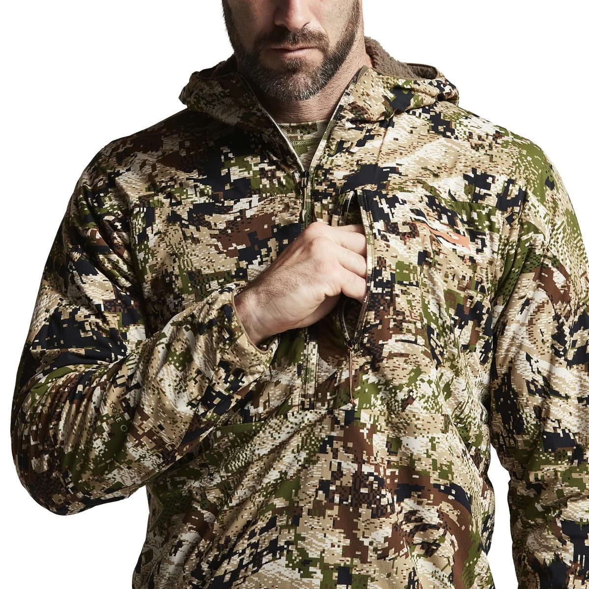 Sitka Ambient HoodyThe Ambient Hoody is everything we like in a mid-layer insulation piece — versatile, packable and durable, but adapts to changing weather conditions and levels of activity. Utilizing low-bulk PrimaLoft® Evolve active insulation, this half-zip pullover hoody delivers plenty of warmth when you’re still, breathes well and manages moisture in active situations and dries quickly if it gets wet. This technical hoody is ideal under a shell during cold weather hunts, on its own during brisk spring and fall evenings in camp, or tossed into your pack for summertime backpacking trips into the high country.20D ripstop nylon fabric is built to take a beating4-way stretch nylon panels allow plenty of mobility100 grams post-consumer recycled PrimaLoft® Evolve active insulation for breathable low-bulk warmthMechanical stretch enables a wide range of motionSculpted hood won’t obscure peripheral visionDurable water repellent finish sheds moisture and keeps fabric from wetting outHalf-zip pullover design for comfort and easy layeringTotal weight: 13 oz.