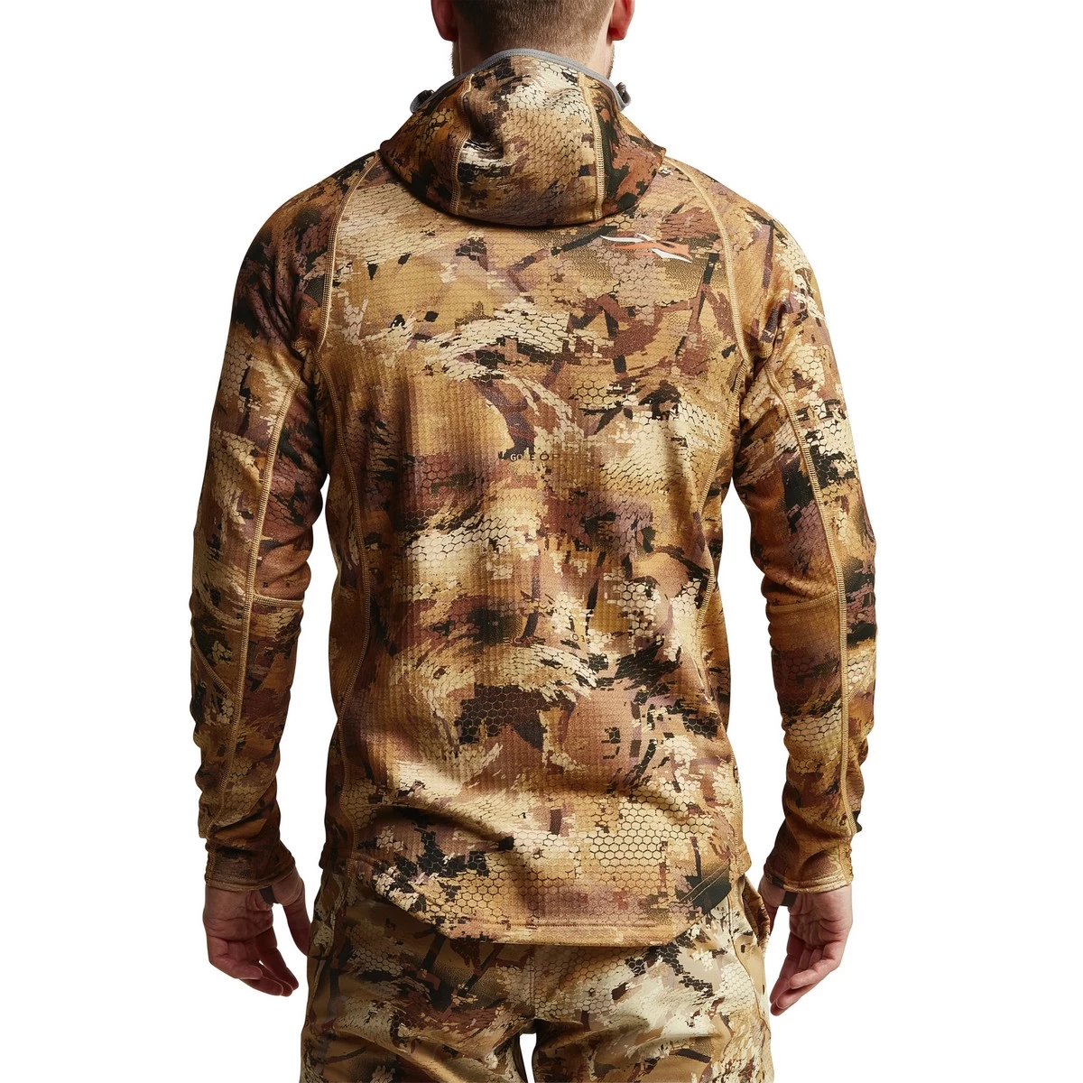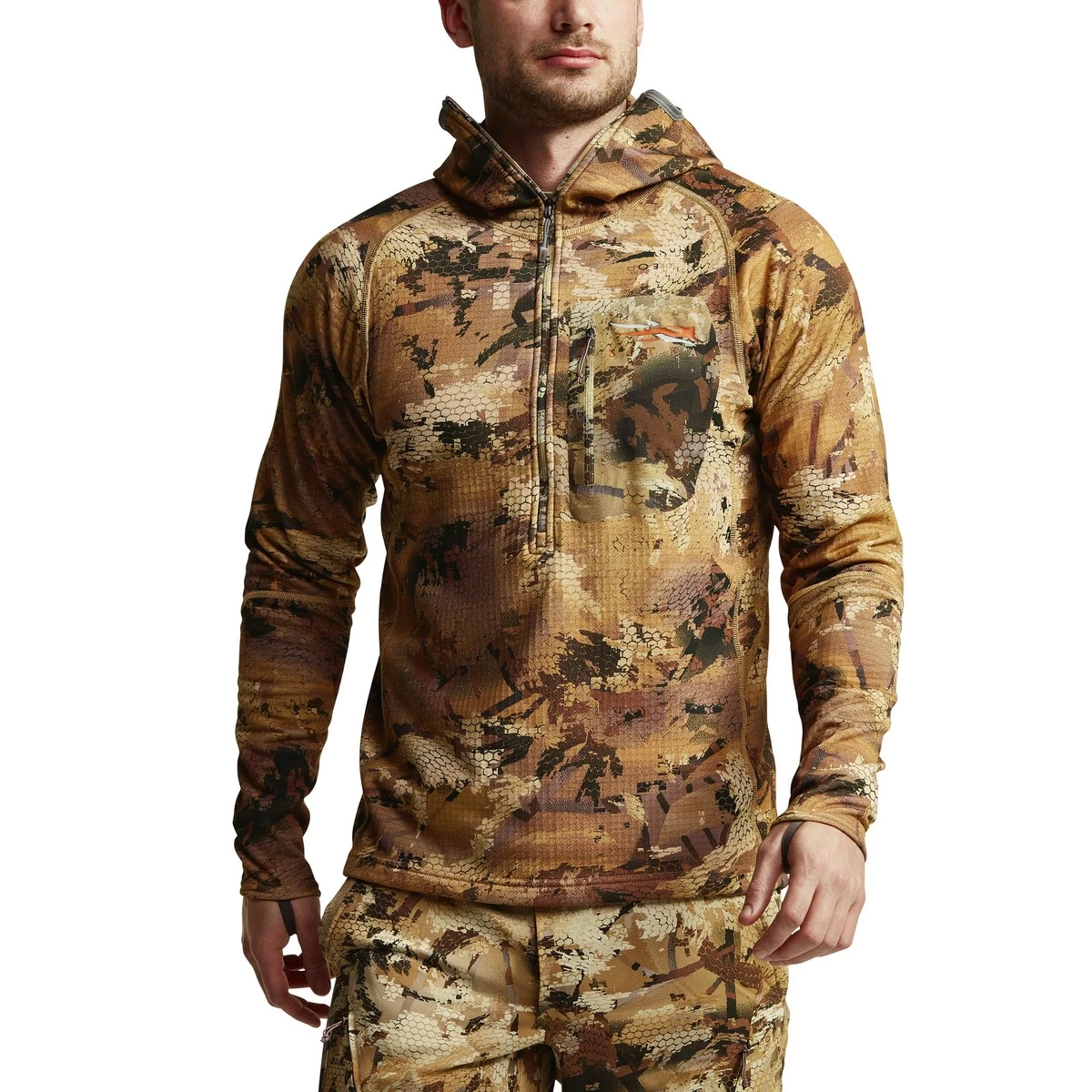 Sitka Grinder Hoody pulls double duty as a warm and comfortable insulation layer or as a weather-resistant and abrasion-resistant outer layer. The lofted fleece interior provides core warmth, and the face fabric features innovative Polartec Hardface technology that stands it’s own in the rain or walking through the brush to the blind. Deep Center Half-Zip for Ventilation Durable Water Repellent Finish Bi-Component Polyester Spandex Knit with Polartec Hardface Technology Environment: Marsh/Field Scenario: Dry Field, Wetlands Temperature: Mild, Cool, Cold, Extreme Cold Technology: POLYGIENE