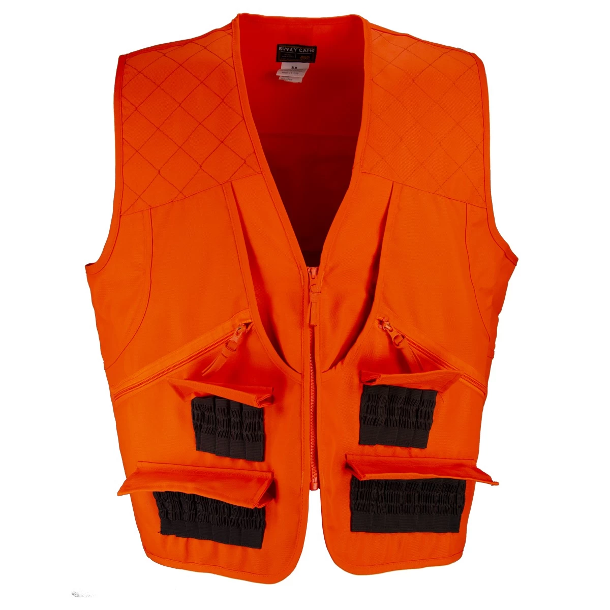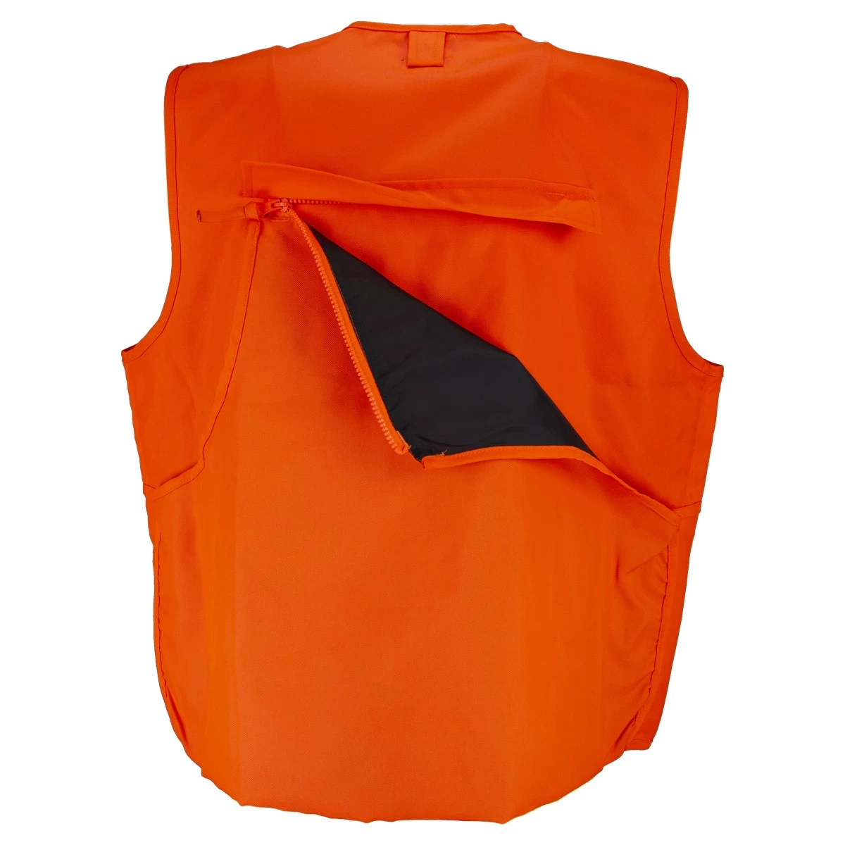World Famous Sports Upland Game Vest in Blaze Orange. Outfit yourself with this WFS Upland Game Vest and you’ll be ready to go the distance. Two generous game bags for a king’s ransom in birds, with plenty of other pockets for your gear and shells. 100% polyester is lightweight and comfortableFront and back game bags2 rows of elastic shell loops with flap guards2 front storage pockets with zippersMachine wash/lay flat to dryImported